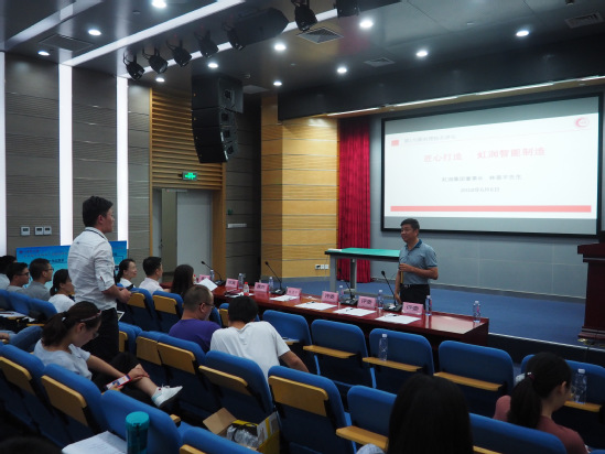 決賽之前,林善平先生給學(xué)生們作了題為“匠心打造,虹潤智能制造”的講座,林先生圍繞虹潤集團(tuán)傳承的“工匠精神”和“傳統(tǒng)文化”,向?qū)W生們講述了虹潤如何通過不斷尋求發(fā)展道路、不斷發(fā)現(xiàn)問題解決問題,從“中國最好”走向“世界最好”的過程。講座后同學(xué)們就科技創(chuàng)新、大學(xué)生創(chuàng)業(yè)等感興趣的方面向林先生提問,林先生一一做了耐心解答,現(xiàn)場氣氛活躍。