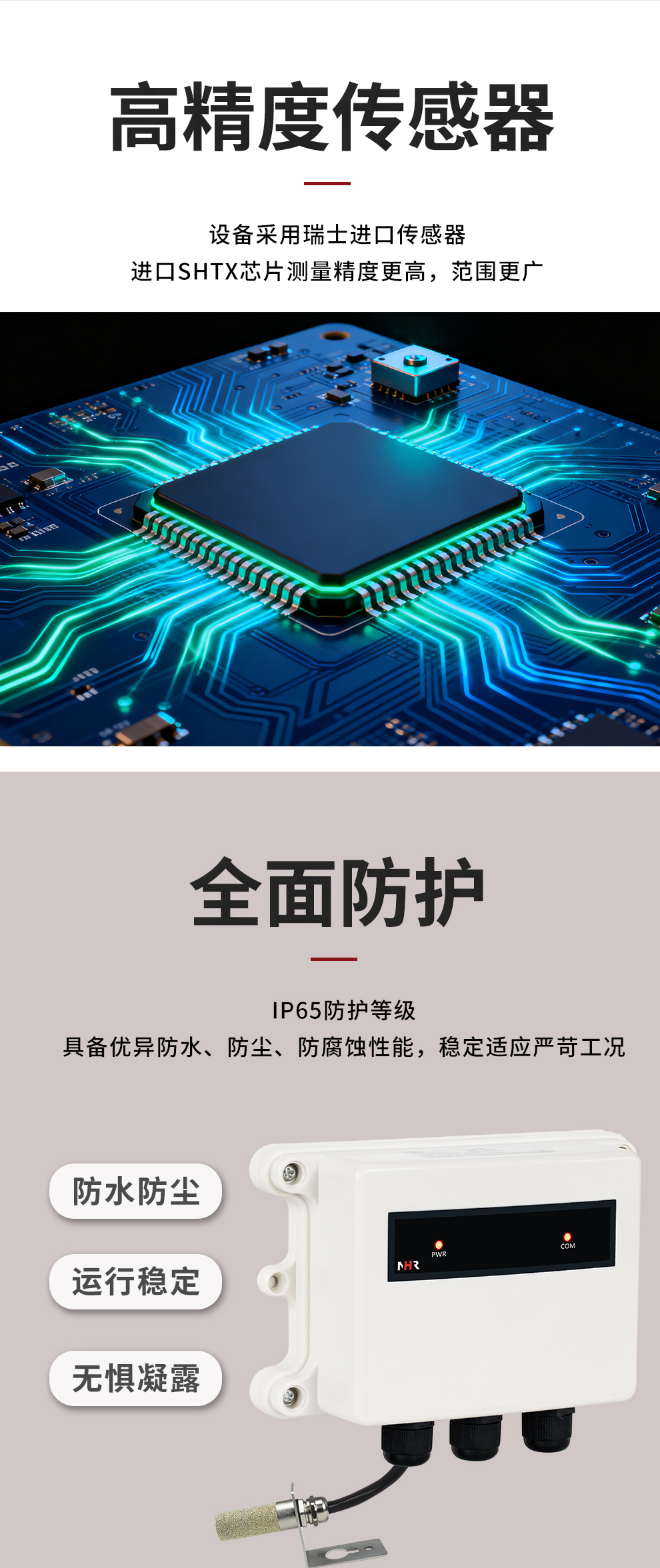 虹潤公司是專業(yè)生產(chǎn)環(huán)境監(jiān)測儀表的國家專精特新“小巨人”企業(yè)。生產(chǎn)的一體式溫濕度變送器,具有溫度、濕度、露點(diǎn)高精準(zhǔn)的測量與變送,報警繼電器輸出,RS485/RS232通訊,IP65防護(hù)等級等特點(diǎn)。產(chǎn)品獲得一種手持式低功耗溫濕度檢測儀、大屏幕溫濕度記錄儀等2項國家發(fā)明專利,主持起草物聯(lián)網(wǎng)智能溫度儀表通用技術(shù)條件、冷鏈溫度記錄儀等2項國家標(biāo)準(zhǔn),以及通信系統(tǒng)多通道數(shù)據(jù)采集控制終端規(guī)范軍用標(biāo)準(zhǔn),以及現(xiàn)場設(shè)備集成等5項智能制造國家標(biāo)準(zhǔn),參與國際5G標(biāo)準(zhǔn)制定,取得溫濕度儀表等3項相關(guān)軟件著作權(quán)。產(chǎn)品廣泛應(yīng)用于工業(yè)現(xiàn)場、農(nóng)業(yè)大棚、倉儲物流、地下管廊、養(yǎng)殖孵化、配電機(jī)房等諸多領(lǐng)域。