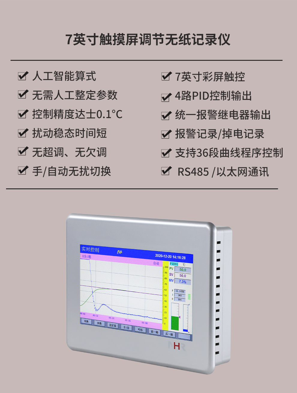 虹潤公司是專業(yè)生產(chǎn)無紙記錄儀的國家專精特新“小巨人”企業(yè)。生產(chǎn)的觸摸屏調(diào)節(jié)無紙記錄儀,具有觸摸大屏顯示,真正人工智能算式,無需人工整定參數(shù),控制精度達(dá)士0.1°C,數(shù)據(jù)記錄與轉(zhuǎn)存, RS485/以太網(wǎng)通訊,5/7/9英寸可選等特點(diǎn)。產(chǎn)品獲得智能化控制器、人工智能調(diào)節(jié)器及調(diào)節(jié)方法、模糊PID控制儀及控制方法、平板無紙記錄儀、巡回檢測顯示方法及裝置等5項(xiàng)國家發(fā)明專利,主持起草物聯(lián)網(wǎng)智能記錄儀表通用技術(shù)條件、物聯(lián)網(wǎng)智能溫度儀表通用技術(shù)條件、工業(yè)過程測量和控制系統(tǒng)用智能調(diào)節(jié)器等3項(xiàng)國家標(biāo)準(zhǔn),通信系統(tǒng)多通道數(shù)據(jù)采集控制終端規(guī)范軍用標(biāo)準(zhǔn),以及空間數(shù)據(jù)與信息數(shù)據(jù)傳輸系統(tǒng)等2項(xiàng)航天標(biāo)準(zhǔn),參與國際5G標(biāo)準(zhǔn)制定,取得觸摸屏彩色調(diào)節(jié)無紙記錄儀等3項(xiàng)相關(guān)軟件著作權(quán)。產(chǎn)品廣泛應(yīng)用于電力、石化、冶金、化工、食品、制藥、熱處理、水處理、機(jī)械配套等諸多領(lǐng)域。