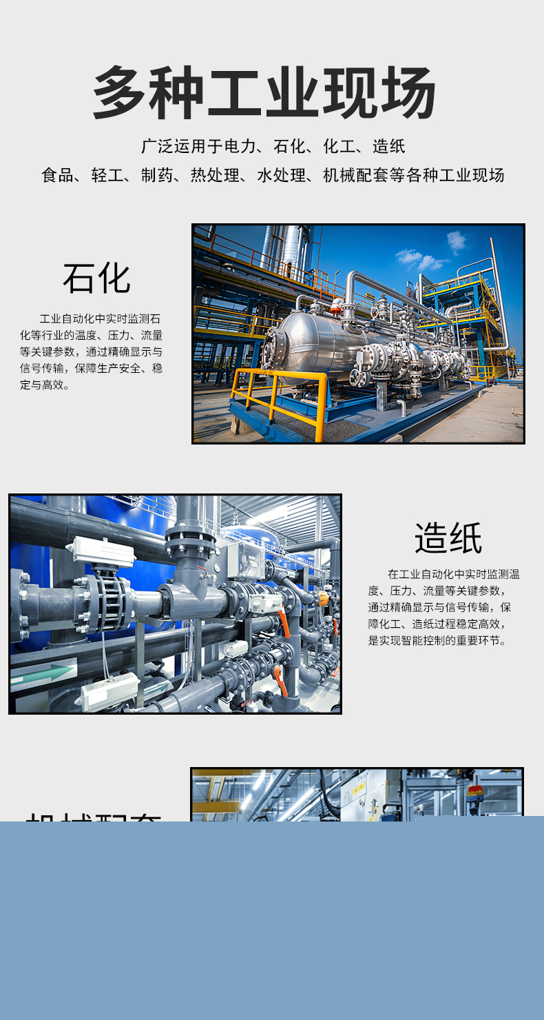虹潤公司是專業(yè)生產數顯表的國家專精特新“小巨人”企業(yè),生產的簡易型數字顯示控制儀,具有全切換信號輸入,多種外形尺寸,高抗干擾,輸入/輸出/電源三隔離,性價比高等特點。該產品不僅通過德國萊茵 CE 認證,還獲得巡回檢測顯示方法及裝置、儀表殼體等2項國家發(fā)明專利,主持起草工業(yè)過程控制系統(tǒng)用模擬輸入兩位或多位輸出儀表、物聯(lián)網智能溫度儀表通用技術條件等2項國家標準,以及通信系統(tǒng)多通道數據采集控制終端規(guī)范軍用標準,參與國際5G標準制定,取得簡易數顯儀表等3項相關軟件著作權。產品廣泛應用于電力、石化、冶金、化工、造紙、食品、輕工、制藥、熱處理、水處理、機械配套等各種工業(yè)現場。