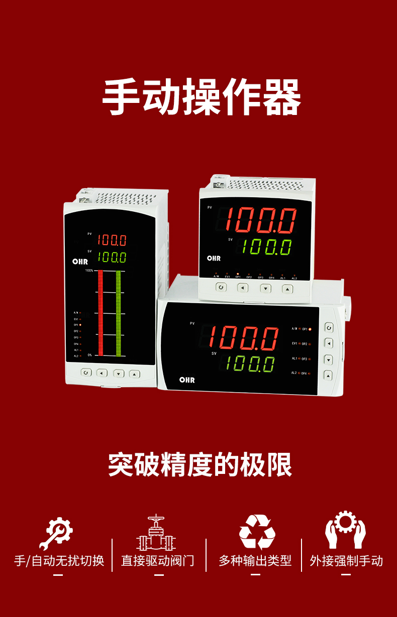 虹潤公司是專業(yè)生產(chǎn)智能手操器的國家專精特新“小巨人”企業(yè),生產(chǎn)的手動操作器,具有手自動無擾切換,直接調(diào)節(jié)閥門,多種輸出類型,外接強(qiáng)制手動功能,高抗干擾等特點。產(chǎn)品獲得閥門自動手動無擾動操作控制方法及裝置、模糊PID控制儀及控制方法、移相觸發(fā)控制器等3項國家標(biāo)準(zhǔn),主持起草工業(yè)過程控制系統(tǒng)用模擬輸入兩位或多位輸出儀表、流程工業(yè)中電氣/儀表和控制系統(tǒng)的試車等2項國家標(biāo)準(zhǔn),以及通信系統(tǒng)多通道數(shù)據(jù)采集控制終端規(guī)范軍用標(biāo)準(zhǔn),參與國際5G標(biāo)準(zhǔn)制定,取得手動操作器等3項相關(guān)軟件著作權(quán)。產(chǎn)品廣泛應(yīng)用于電力、石化、冶金、化工、造紙、食品、輕工、制藥、熱處理、水處理、機(jī)械配套等各種工業(yè)現(xiàn)場。