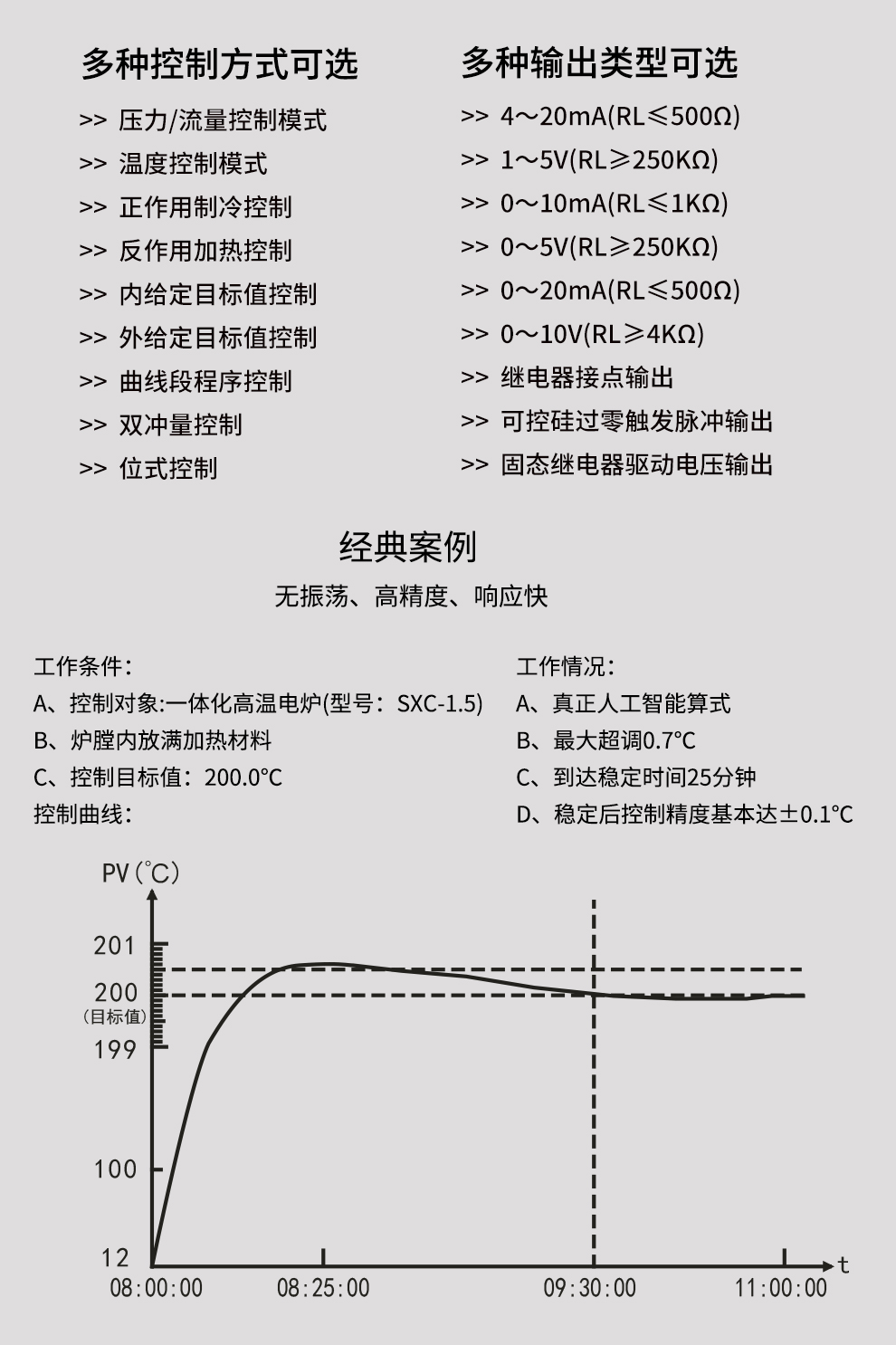 虹潤公司是專業(yè)生產(chǎn)溫控器的國家專精特新“小巨人”企業(yè)。生產(chǎn)的彩色調(diào)節(jié)無紙記錄儀,具有8路PID獨(dú)立控制,真正人工智能算式,無需人工整定參數(shù),控制精度達(dá)士0.1°C,支持以太網(wǎng)/RS485通訊輸出等特點(diǎn)。產(chǎn)品獲得智能化控制器、人工智能調(diào)節(jié)器及調(diào)節(jié)方法、模糊PID控制儀及控制方法、一種平板無紙記錄儀、巡回檢測(cè)顯示方法及裝置等5項(xiàng)國家發(fā)明專利,主持起草物聯(lián)網(wǎng)智能記錄儀表通用技術(shù)條件、物聯(lián)網(wǎng)智能溫度儀表通用技術(shù)條件、工業(yè)過程測(cè)量和控制系統(tǒng)用智能調(diào)節(jié)器等3項(xiàng)國家標(biāo)準(zhǔn),通信系統(tǒng)多通道數(shù)據(jù)采集控制終端規(guī)范軍用標(biāo)準(zhǔn),以及空間數(shù)據(jù)與信息數(shù)據(jù)傳輸系統(tǒng)等2項(xiàng)航天標(biāo)準(zhǔn)。參與國際5G標(biāo)準(zhǔn)制定,取得液晶數(shù)據(jù)采集無紙記錄儀等4項(xiàng)相關(guān)軟件著作權(quán)。產(chǎn)品廣泛應(yīng)用于電石化、工業(yè)爐、試驗(yàn)設(shè)備、注塑機(jī)械、包裝機(jī)械等需要對(duì)現(xiàn)場(chǎng)溫度進(jìn)行監(jiān)測(cè)控制的行業(yè)。