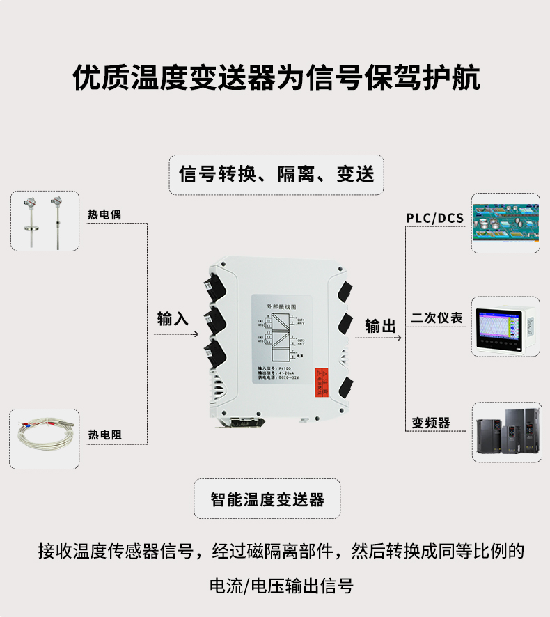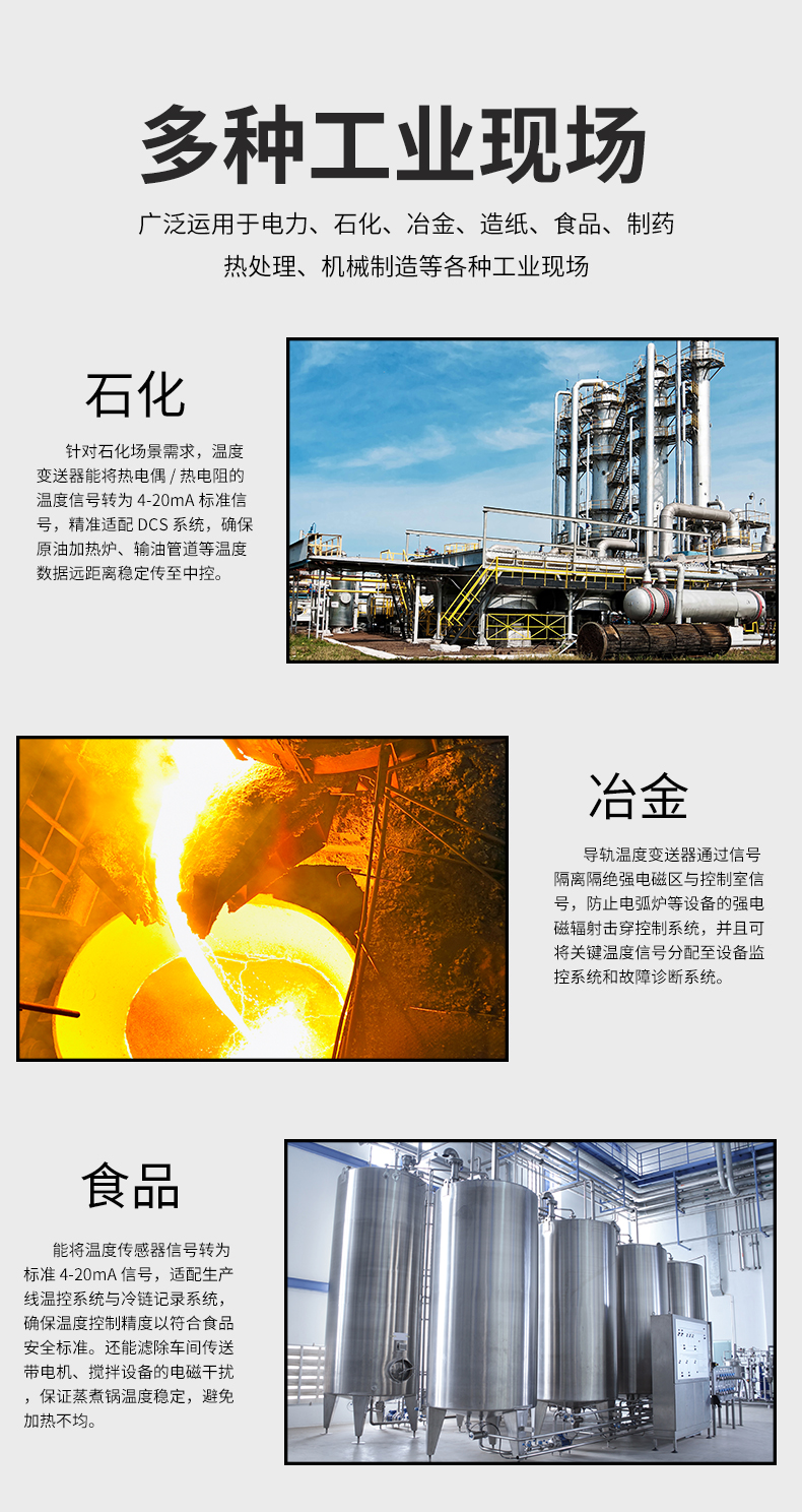 虹潤(rùn)公司是專業(yè)生產(chǎn)溫度變送器的國(guó)家專精特新“小巨人”企業(yè)。生產(chǎn)的溫度變送器,具有采用磁隔離技術(shù),配套編程器可修改參數(shù),抗干擾能力強(qiáng),穩(wěn)定性好,帶RS485或HART通訊等特點(diǎn)。該產(chǎn)品不僅通過(guò)HART基金會(huì)認(rèn)證、德國(guó)萊茵 CE 認(rèn)證與 SIL 功能安全認(rèn)證,還獲得具備減震抗干擾能力的溫度變送器、信號(hào)隔離器、一種二端子模塊、無(wú)源信號(hào)隔離器等4項(xiàng)國(guó)家發(fā)明專利,主持起草物聯(lián)網(wǎng)智能溫度儀表、現(xiàn)場(chǎng)設(shè)備工具(FDT)接口規(guī)范、工業(yè)過(guò)程測(cè)量和控制系統(tǒng)用溫度變送器等3項(xiàng)國(guó)家標(biāo)準(zhǔn),以及通信系統(tǒng)多通道數(shù)據(jù)采集控制終端規(guī)范軍用標(biāo)準(zhǔn),參與國(guó)際5G標(biāo)準(zhǔn)制定,取得溫度變送器等5項(xiàng)相關(guān)軟件著作權(quán)。產(chǎn)品廣泛應(yīng)用于石油、電力、化工,冶金、制藥、紡織、橡膠制造等工業(yè)領(lǐng)域現(xiàn)場(chǎng)自動(dòng)化測(cè)溫過(guò)程。