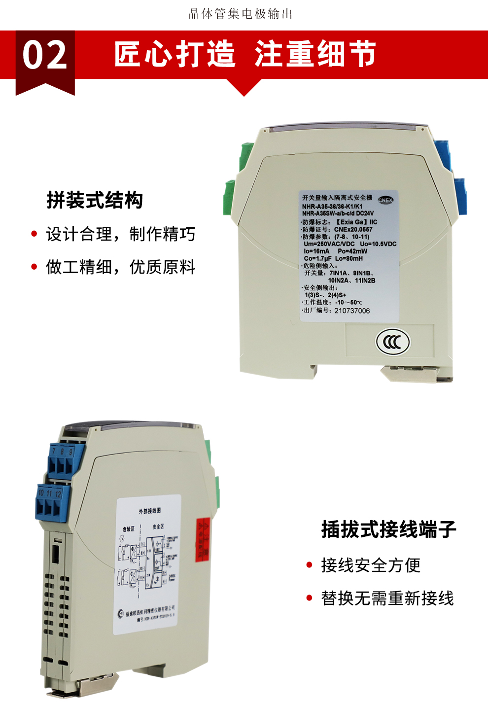 虹潤公司是專業(yè)生產隔離器的國家專精特新“小巨人”企業(yè)。生產的隔離式安全柵涵蓋信號開關量輸入、電壓輸入、電流輸入、熱電阻輸入、熱電偶輸入、頻率輸入等多種產品類型。產品獲得具備減震抗干擾能力的溫度變送器、信號隔離器、一種二端子模塊、無源信號隔離器等4項國家發(fā)明專利,主持起草物聯(lián)網智能溫度儀表、現(xiàn)場設備工具(FDT)接口規(guī)范、工業(yè)過程測量和控制系統(tǒng)用溫度變送器等3項國家標準,以及通信系統(tǒng)多通道數(shù)據采集控制終端規(guī)范軍用標準。參與國際5G標準制定,取得智能隔離式安全柵等4項相關軟件著作權。產品廣泛應用于石油、電力、化工,冶金、智能制造、污水處理等諸多行業(yè)。