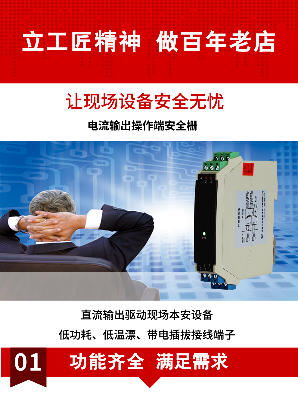 虹潤(rùn)公司是專業(yè)生產(chǎn)隔離器的國(guó)家專精特新“小巨人”企業(yè)。生產(chǎn)的電壓/電流輸出操作端隔離柵涵蓋信號(hào)電壓輸入、電流輸入、開關(guān)量輸入等多種產(chǎn)品類型。產(chǎn)品獲得具備減震抗干擾能力的溫度變送器、信號(hào)隔離器、一種二端子模塊、無(wú)源信號(hào)隔離器等4項(xiàng)國(guó)家發(fā)明專利,主持起草物聯(lián)網(wǎng)智能溫度儀表、現(xiàn)場(chǎng)設(shè)備工具(FDT)接口規(guī)范、工業(yè)過(guò)程測(cè)量和控制系統(tǒng)用溫度變送器等3項(xiàng)國(guó)家標(biāo)準(zhǔn),以及通信系統(tǒng)多通道數(shù)據(jù)采集控制終端規(guī)范軍用標(biāo)準(zhǔn)。參與國(guó)際5G標(biāo)準(zhǔn)制定,取得智能隔離式安全柵等4項(xiàng)相關(guān)軟件著作權(quán)。產(chǎn)品廣泛應(yīng)用于石油、電力、化工,冶金、智能制造、污水處理等諸多行業(yè)。