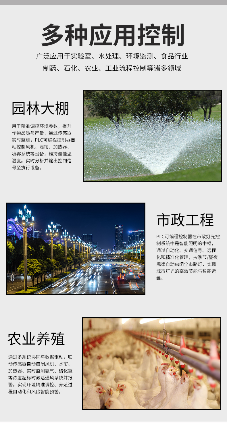 虹潤(rùn)公司是專(zhuān)業(yè)生產(chǎn)PLC控制器的國(guó)家專(zhuān)精特新“小巨人”企業(yè)。生產(chǎn)的簡(jiǎn)易PLC控制器,具有全隔離設(shè)計(jì),中文編程,專(zhuān)業(yè)邏輯控制與時(shí)間,梯形圖編程方式,遠(yuǎn)程RS485通訊監(jiān)測(cè)等特點(diǎn)。產(chǎn)品獲得智能化控制器、多通道可編程繼電器等2項(xiàng)國(guó)家發(fā)明專(zhuān)利;主持起草流程工業(yè)中電氣/儀表和控制系統(tǒng)的試車(chē)國(guó)家標(biāo)準(zhǔn),通信系統(tǒng)多通道數(shù)據(jù)采集控制終端規(guī)范軍用標(biāo)準(zhǔn),以及現(xiàn)場(chǎng)設(shè)備集成等5項(xiàng)智能制造國(guó)家標(biāo)準(zhǔn),參與國(guó)際5G標(biāo)準(zhǔn)制定,取得可編程繼電器等2項(xiàng)相關(guān)軟件著作權(quán)。產(chǎn)品廣泛應(yīng)用于工業(yè)自動(dòng)化設(shè)備、電氣自動(dòng)化系統(tǒng)、農(nóng)業(yè)灌溉、包裝機(jī)械、印刷機(jī)械、樓宇自控等諸多領(lǐng)域。