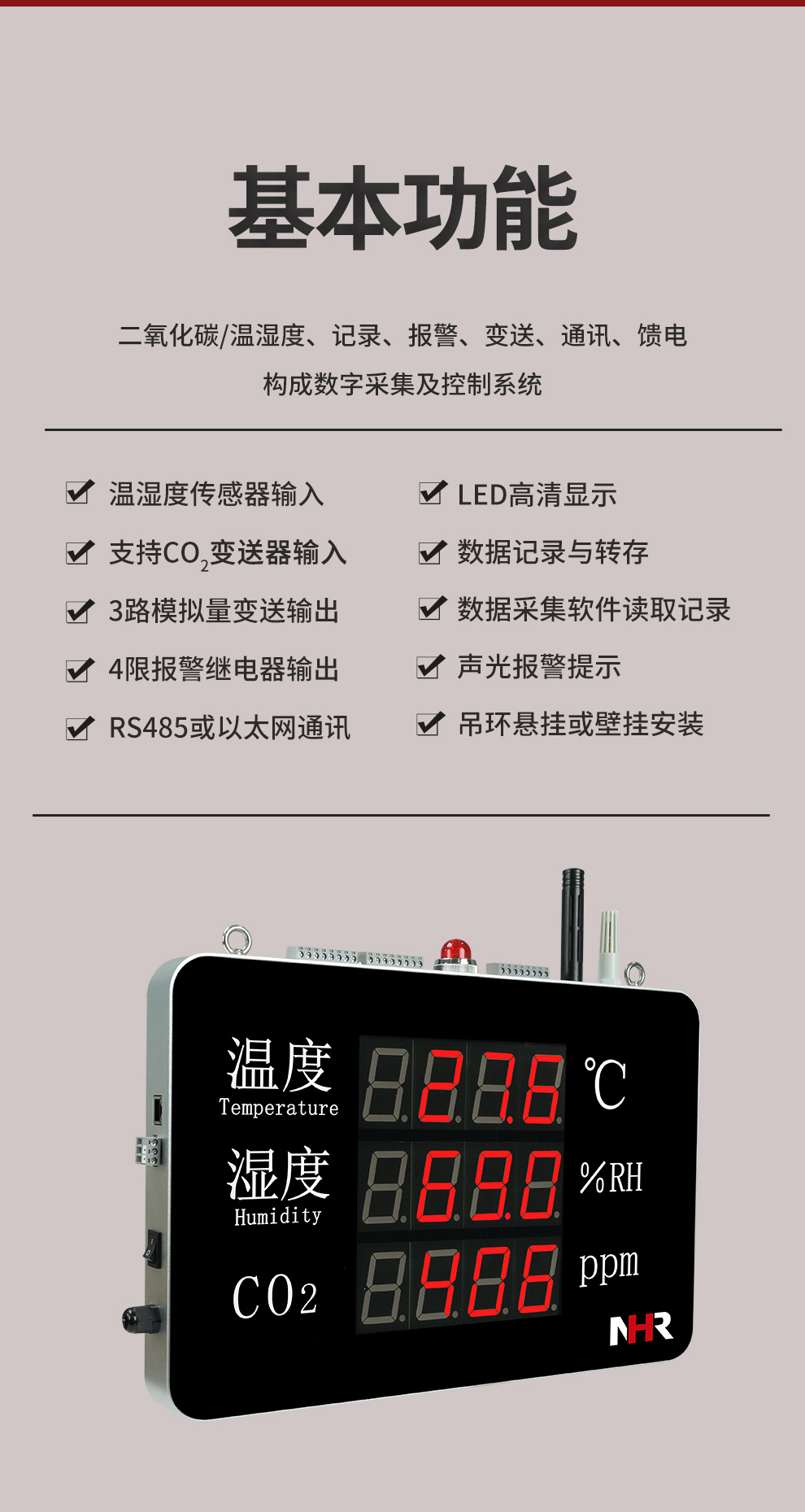 虹潤公司是專業(yè)生產(chǎn)環(huán)境監(jiān)測儀表的國家專精特新“小巨人”企業(yè)。生產(chǎn)的大屏二氧化碳溫濕度記錄儀,具有高清大屏顯示,數(shù)據(jù)記錄與轉(zhuǎn)存,同步觸發(fā)可靠預警,RS485或以太網(wǎng)通訊等特點。產(chǎn)品獲得一種手持式低功耗溫濕度檢測儀、無紙記錄儀等2項國家發(fā)明專利,主持起草物聯(lián)網(wǎng)智能溫度儀表通用技術(shù)條件、冷鏈溫度記錄儀等2項國家標準,通信系統(tǒng)多通道數(shù)據(jù)采集控制終端規(guī)范軍用標準,以及現(xiàn)場設備集成等5項智能制造國家標準,參與國際5G標準制定,取得大屏幕溫濕度數(shù)據(jù)記錄儀等3項相關(guān)軟件著作權(quán)。產(chǎn)品廣泛應用于實驗室、農(nóng)業(yè)大棚、倉庫、工業(yè)現(xiàn)場、配電機房、畜牧業(yè)等諸多領(lǐng)域。