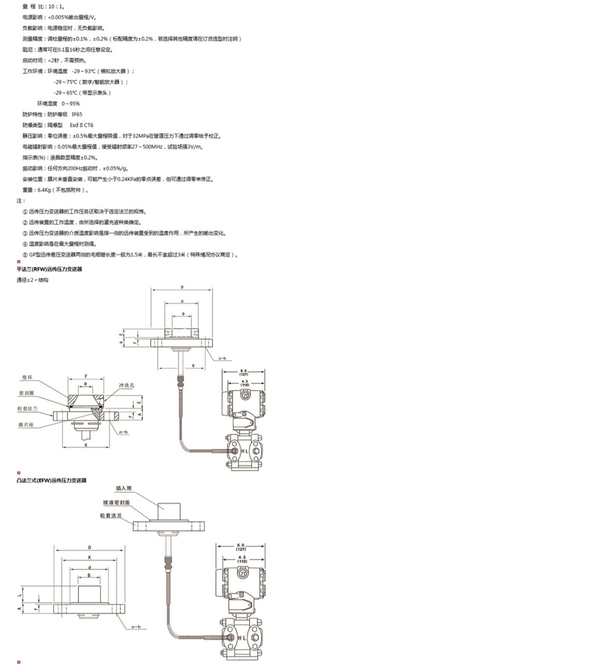 HR-3051GP遠(yuǎn)傳壓力變送器是一種通過(guò)安裝在管道或容器上的遠(yuǎn)傳裝置來(lái)感受被測(cè)壓力,該壓力經(jīng)毛細(xì)管內(nèi)的灌充硅油(或其它的液體)傳遞至變送器的主體,然后由變送器主體內(nèi)的δ室和放大線路板,將壓力或差壓轉(zhuǎn)換4~20mA.DC信號(hào)輸出。