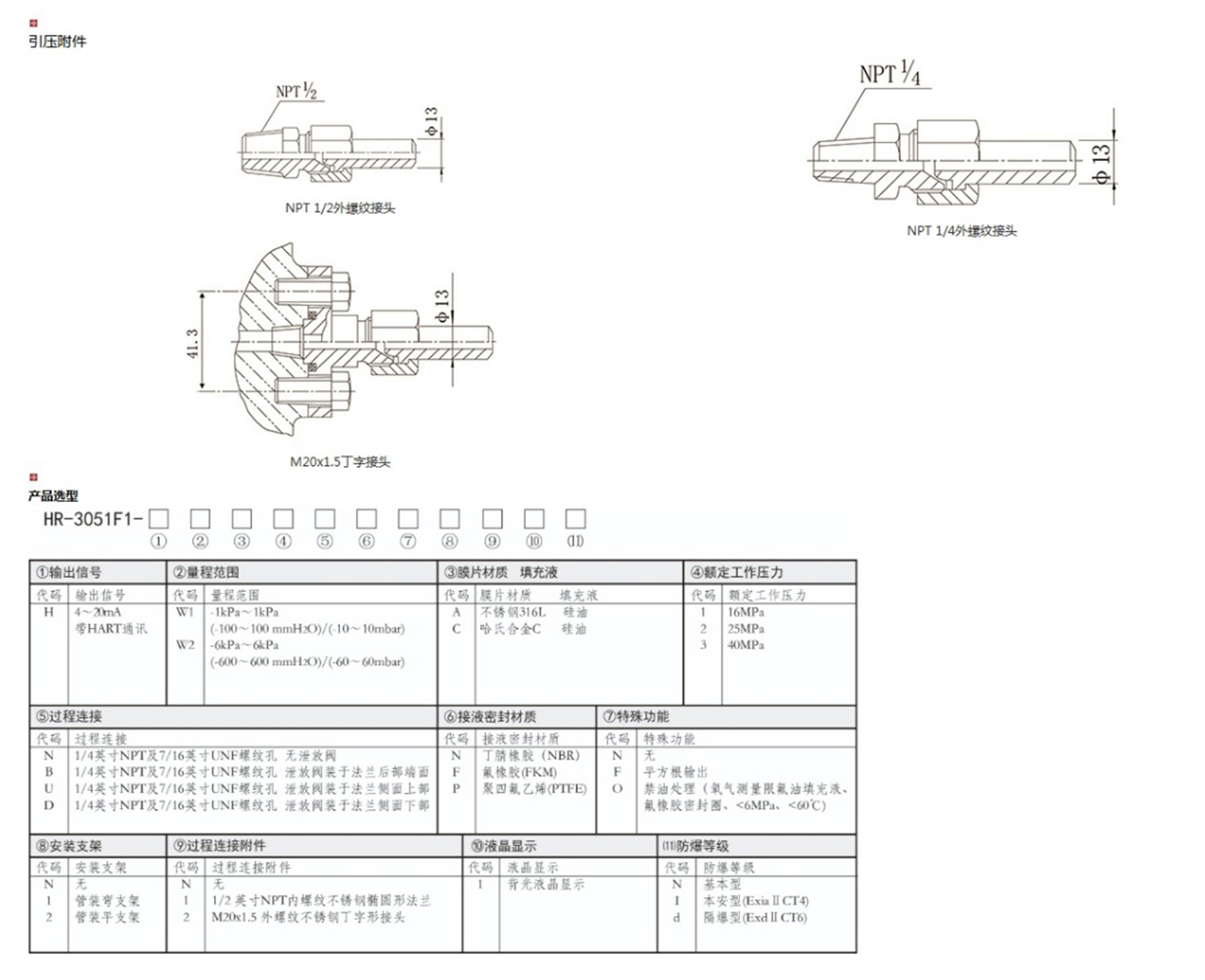 HR-3051F1智能單晶硅微差壓變送器能準(zhǔn)確的測量差壓,并把它轉(zhuǎn)換成4~20mADC的輸出信號。該變送器可通過三按鍵本地操作,或通用手操器、組態(tài)軟件、以及手機(jī)APP遠(yuǎn)程操作,在不影響4~20mA DC的輸出信號的同時,進(jìn)行顯示與組態(tài)。