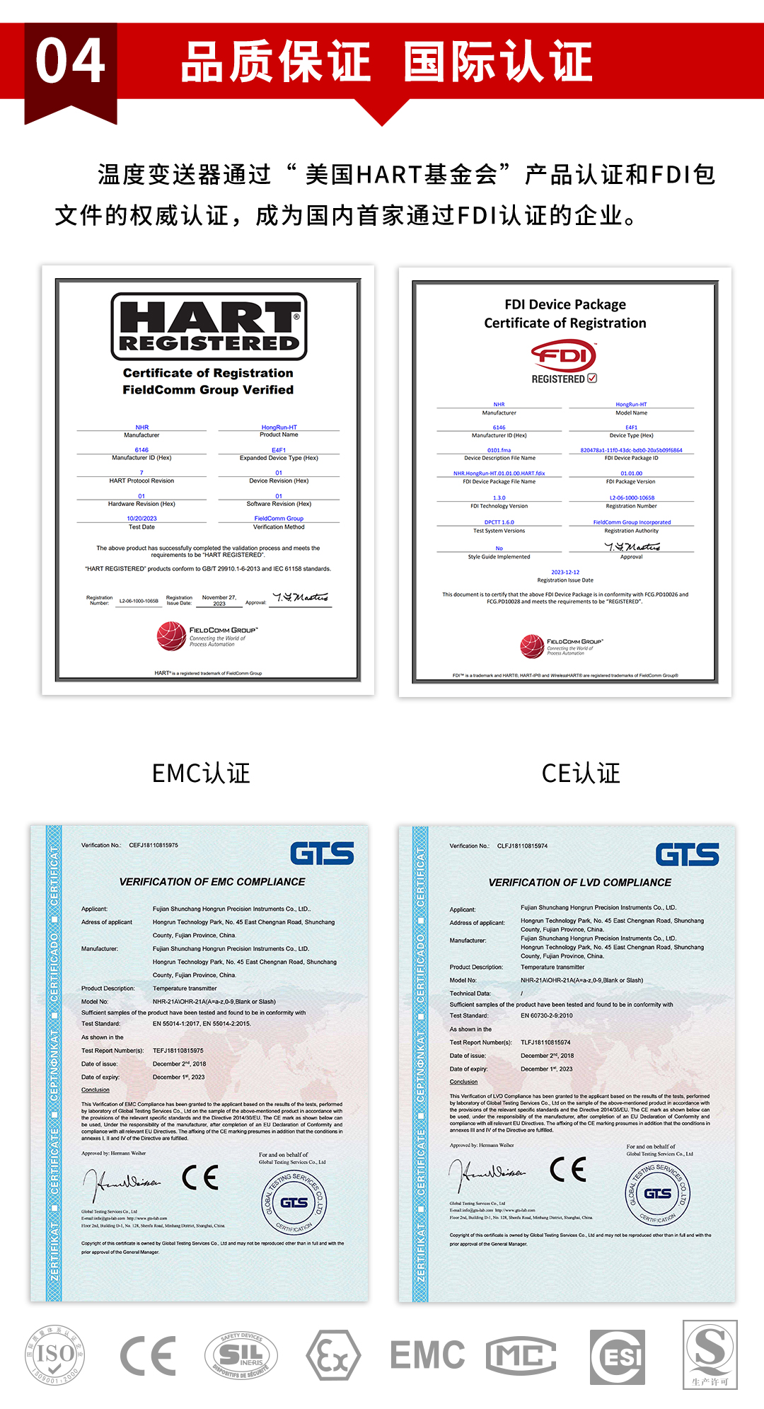 虹潤公司是專業(yè)生產(chǎn)溫度變送器的國家專精特新“小巨人”企業(yè)。生產(chǎn)的現(xiàn)場顯示隔離溫度變送器,具有可修改輸入信號類型,測量精度高,穩(wěn)定性好,帶HART或RS485通訊計(jì)等特點(diǎn)。該產(chǎn)品不僅通過德國萊茵 CE 認(rèn)證與 SIL 功能安全認(rèn)證,還獲得具備減震抗干擾能力的溫度變送器、信號隔離器、一種二端子模塊、無源信號隔離器等3項(xiàng)國家發(fā)明專利。主持起草物聯(lián)網(wǎng)智能溫度儀表、現(xiàn)場設(shè)備工具(FDT)接口規(guī)范、工業(yè)過程測量和控制系統(tǒng)用溫度變送器等3項(xiàng)國家標(biāo)準(zhǔn),以及通信系統(tǒng)多通道數(shù)據(jù)采集控制終端規(guī)范軍用標(biāo)準(zhǔn)。參與國際5G標(biāo)準(zhǔn)制定,取得高精度溫度變送器等3項(xiàng)相關(guān)軟件著作權(quán)。產(chǎn)品廣泛應(yīng)用于石油、化工、電力、冶金、制藥、食品、水處理等各種工業(yè)領(lǐng)域。