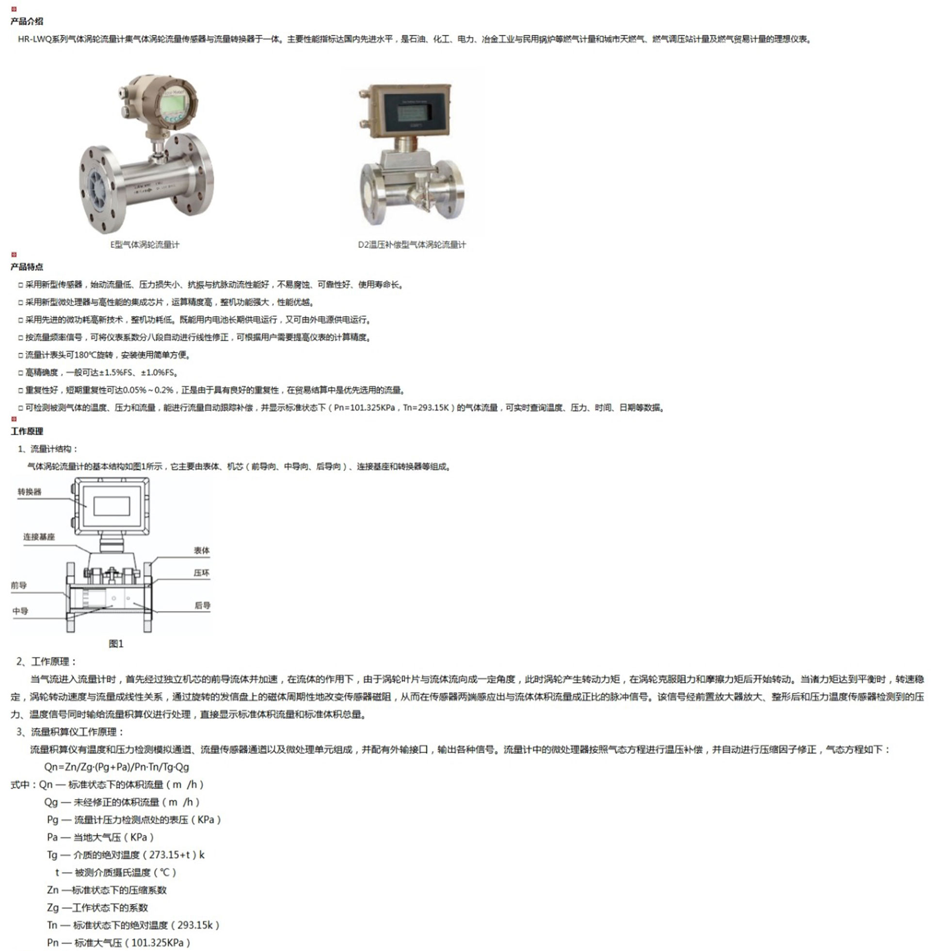 HR-LWQ系列氣體渦輪流量計集氣體渦輪流量傳感器與流量轉(zhuǎn)換器于一體。主要性能指標達國內(nèi)先進水平,是石油、化工、電力、冶金工業(yè)與民用鍋爐等燃氣計量和城市天燃氣、燃氣調(diào)壓站計量及燃氣貿(mào)易計量的理想儀表。